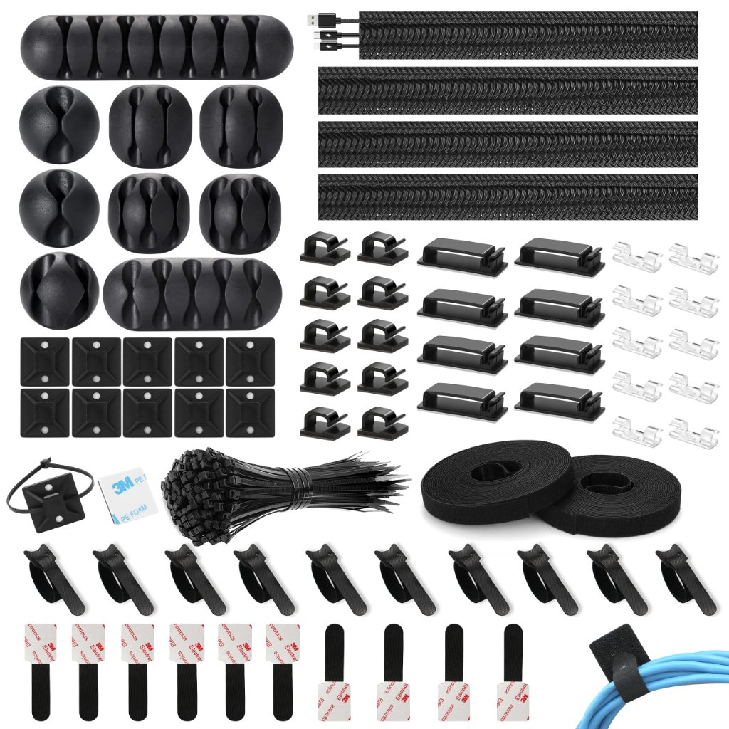 This all-in-one set contains everything you need to keep your cords in check. The package includes 4 cable sleeve splits, 47 self-adhesive cable clips, 10 cable ties, 10 adhesive wall cable ties, 100 fasten cable ties, and 2 rolls of cable ties. Whether you’re managing cables in your home office, entertainment center, or workshop, this kit has you covered!